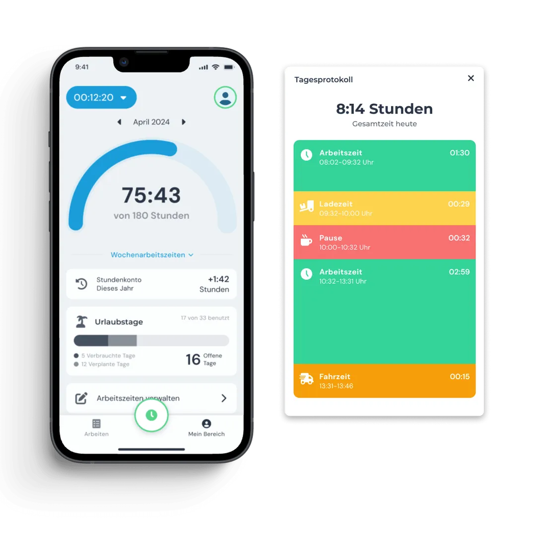 Record project start, breaks, and end of workday